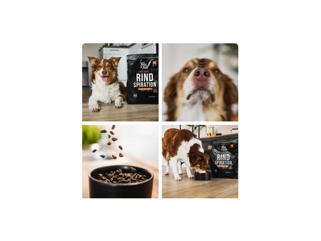Krmivo Tales & Tails hovězí maso se vyrábí obzvláště šetrným výrobním procesem, aby se v krmivu zachovaly živiny. Při tomto speciálním výrobním procesu (extruzi) se dosahuje teploty 90 °C. Náš výrobní proces umožňuje vysoký obsah masa. Umožňuje také vyšší obsah vlhkosti v krmivu. Naše krmivo má obsah vlhkosti 18 %. Ostatní suchá krmiva mají obvykle maximální obsah vlhkosti 10 %. Díky vyššímu obsahu vlhkosti je krmivo šťavnatější a chutnější a většina psů ho velmi dobře přijímá a tráví.