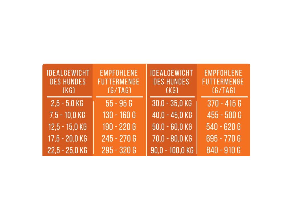 Složení: Hovězí (70 %, z toho hovězí čerstvé, 60 %), hovězí (sušené, 10 %), sladké brambory (sušené, 19 %), dýně (sušená, 4 %), proteinový hydrolyzát (vegetariánský, 1 %), řepkový olej, minerální látky.